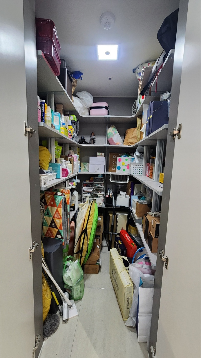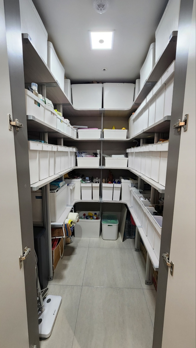 현관 팬트리와 별개로 내부에 넓고 선반이 잘 짜여진 팬트리가 있는 신축 아파트 정리를 진행했습니다.