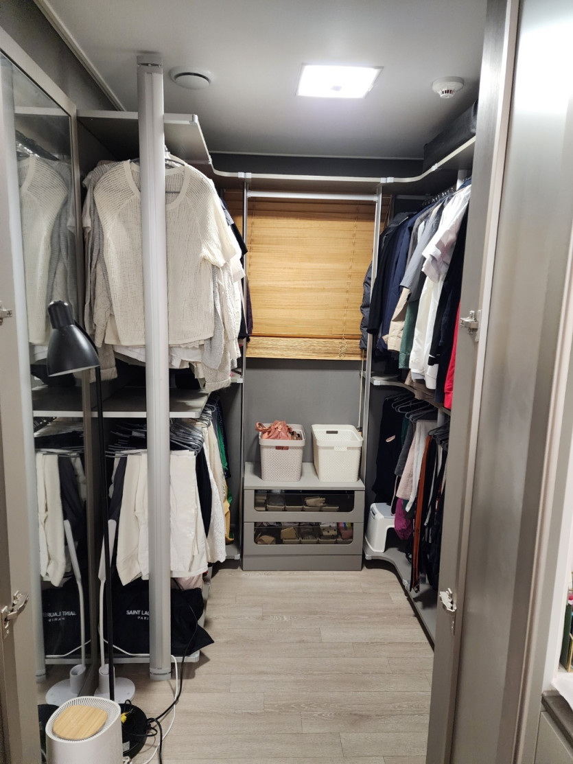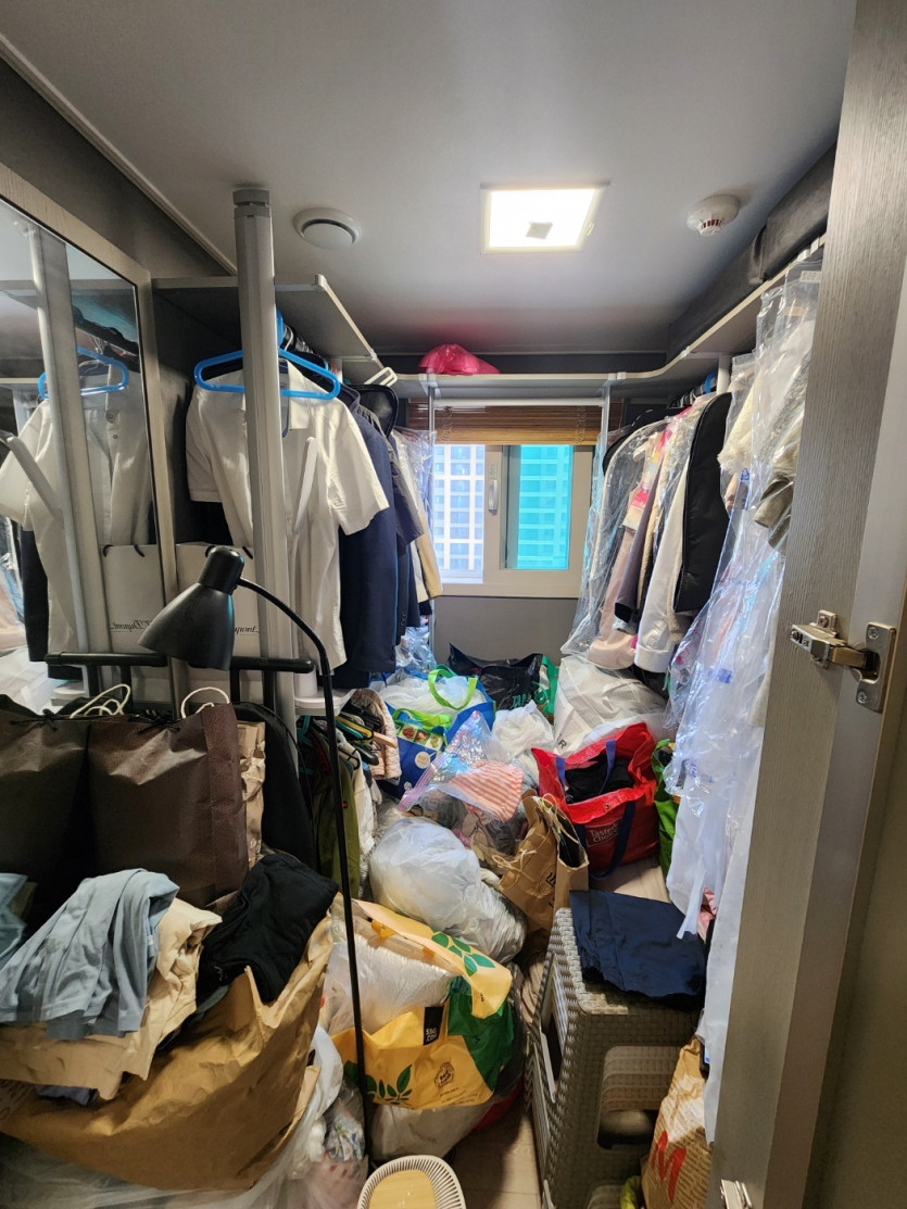 이사 후 물건들을 각 공간에 맞게 분류해놓고 하나씩 정리하시려고했는데 맞벌이에 육아를 하시다보니 정리할 시간적 여유가 많지 않아 저희 정리클리닉을 찾아주셨습니다. 우선 모든 옷들과 양말, 속옷 등의 물건을 모두 꺼내서 옷걸이에 걸 옷들과, 사랍장에 넣을 옷, 와이어수납함에 넣을 계절 옷 등을 구분합니다. 크기가 커서 공간을 많이 차지하는 정장 옷걸이나 세탁소 옷걸이는 정리클리닉 추천 옷걸이로 모두 교환해서 깔끔하게 정리해드렸습니다,