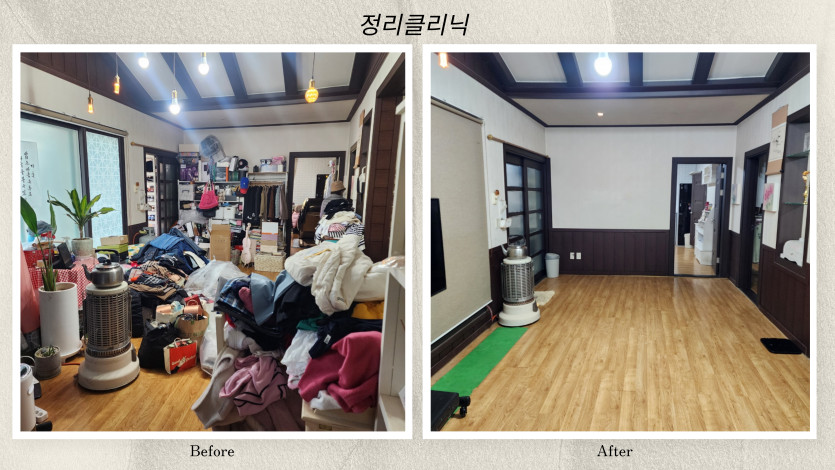 최근 1년이내, 최근 3년이내 한번도 사용하지 않은 물건들은 앞으로도 사용하지 않을 확률이 높기 때문에 배출하거나 당근마켓 등을 통해 나눔, 판매 하시는 것도 하나의 방법일 수 있습니다. 거실의 많은 짐들을 정리하고 나니 주말이 아니라 평일에도 여기서 생활하고 싶다고 하셔서 더 뿌듯했던 현장이었습니다 ^^